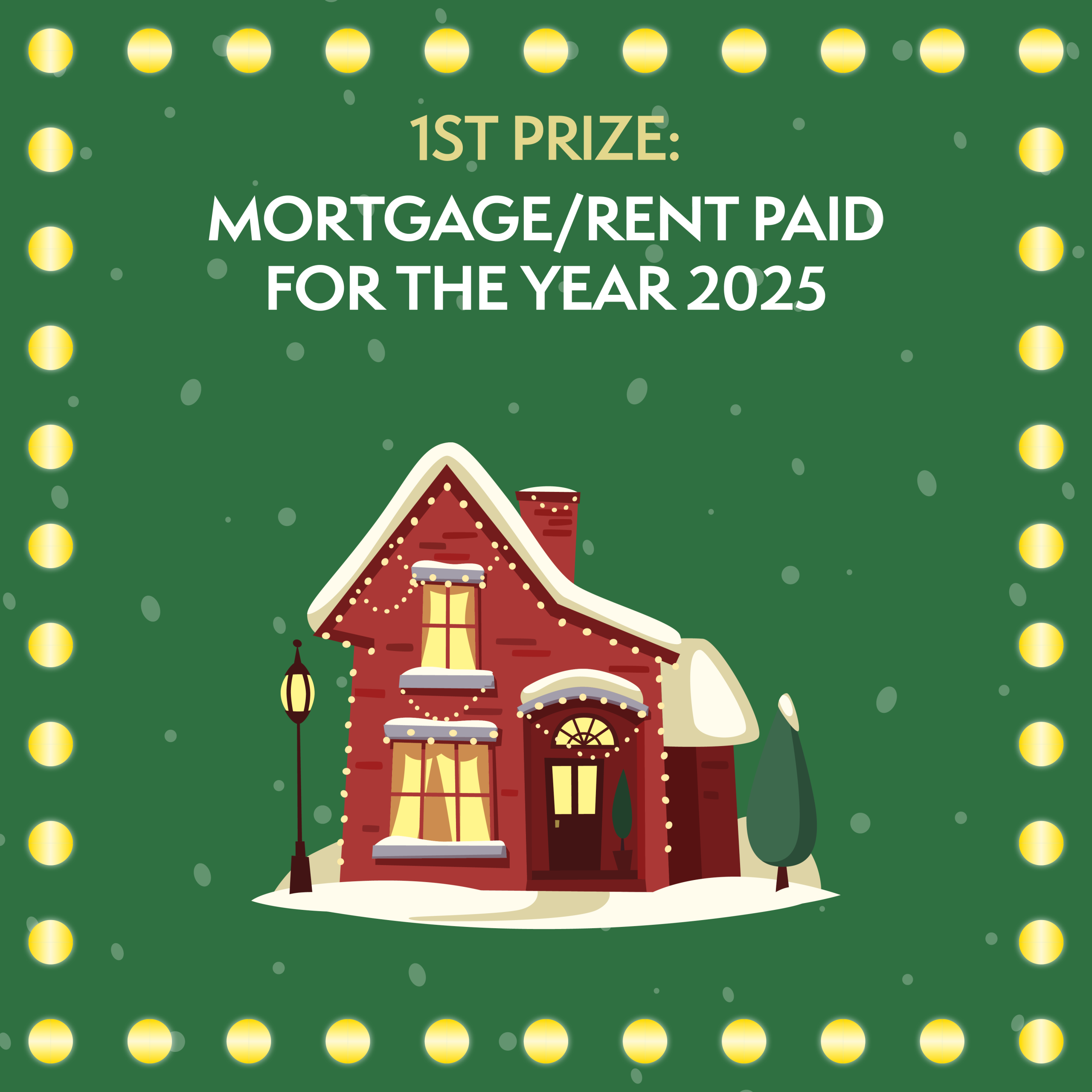 1st Prize – Mortgage/Rent Paid for the Year of 2026* (or choose a £6500 Cash Prize)