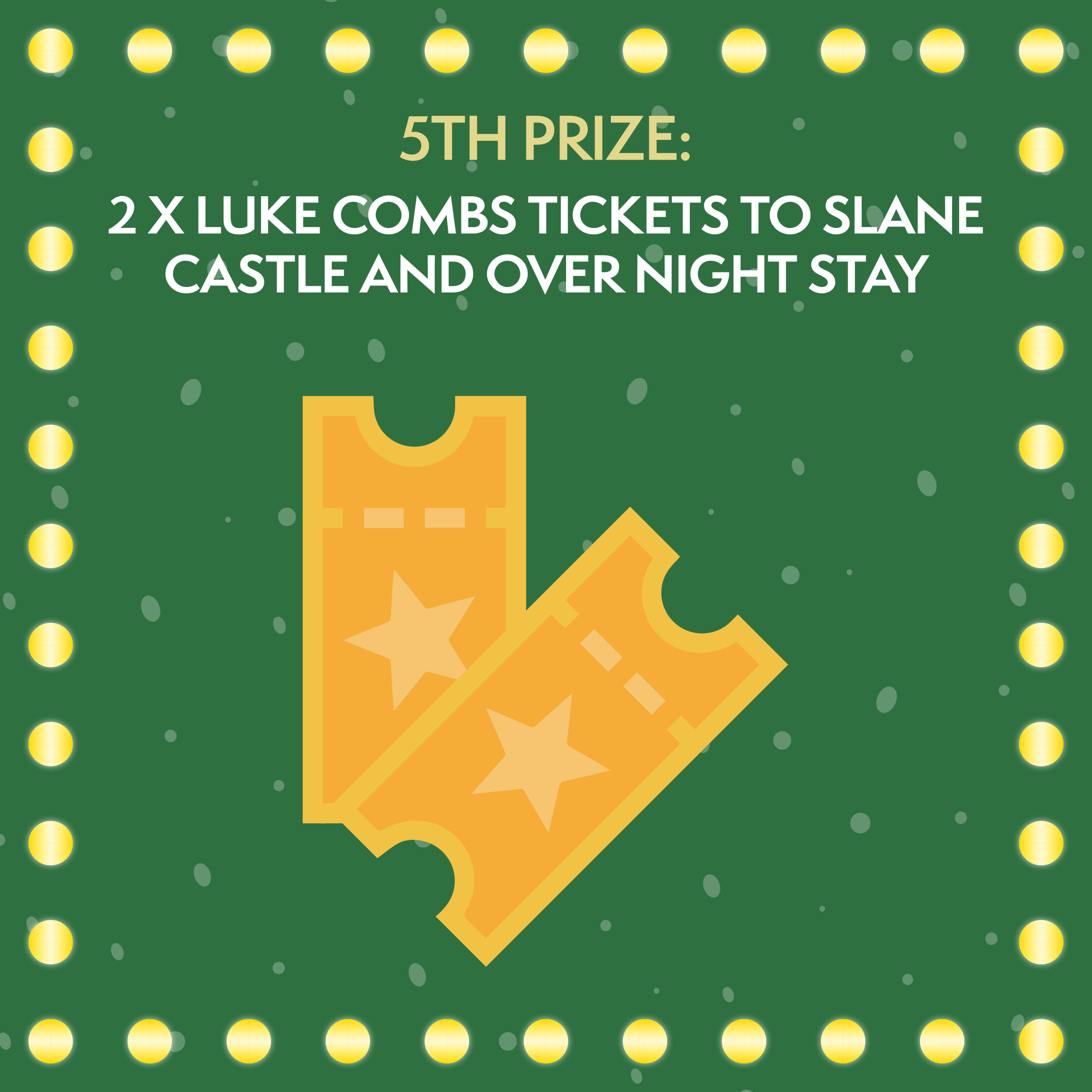 5th Prize – 2 x Tickets to Luke Combs at Slane Castle and and Over Night Stay